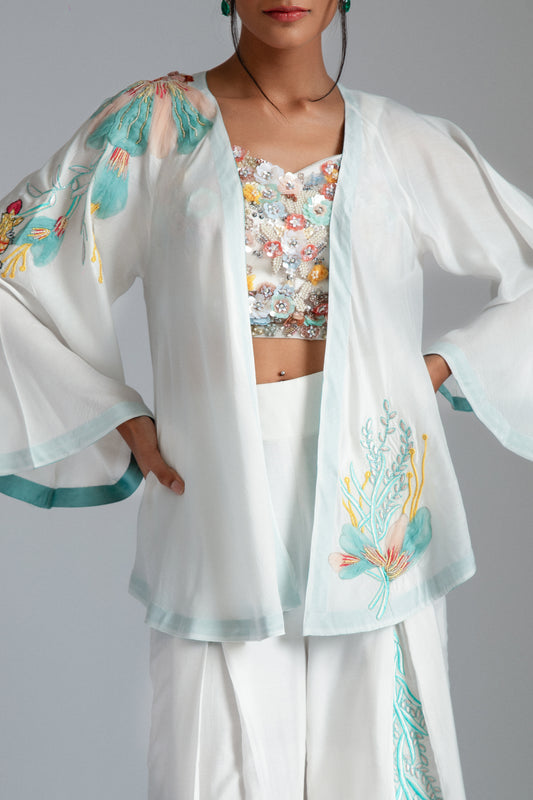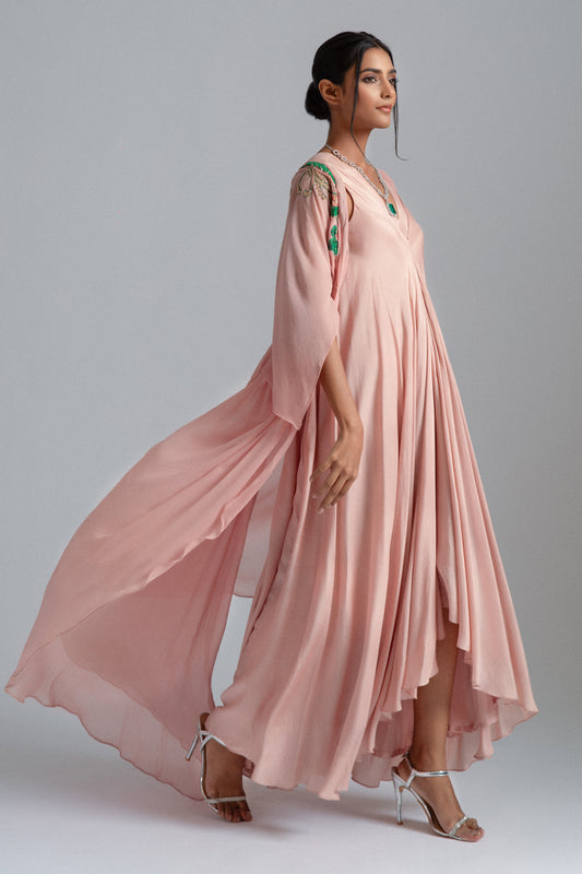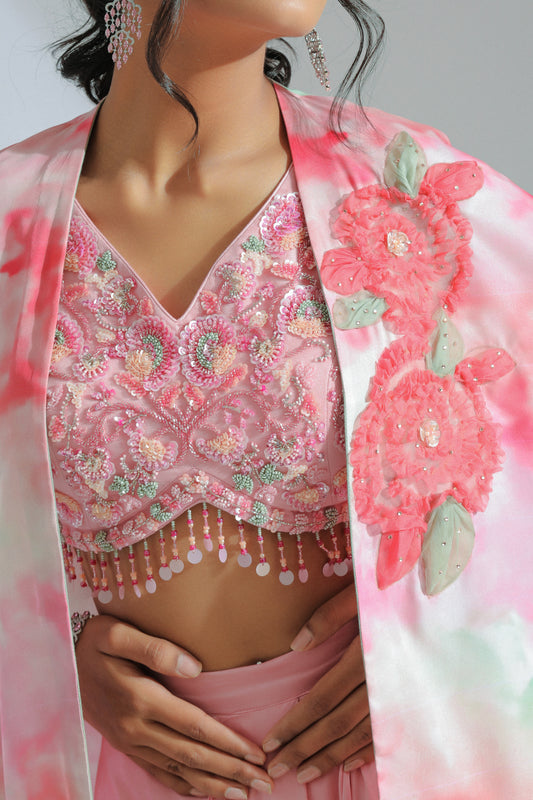 Pink & Sage Green Georgette Crystal Embroidered Cape Set