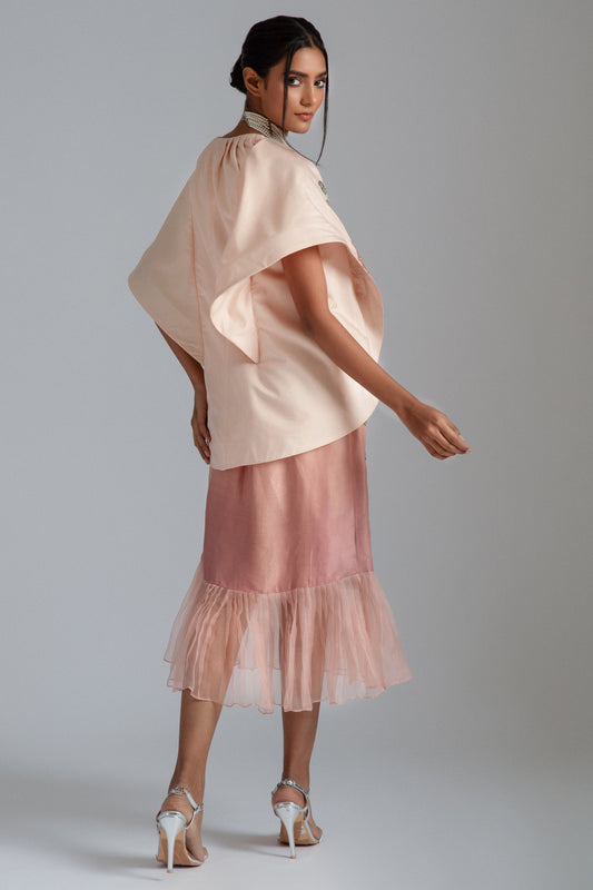 Peach Georgette & Silk Mul Mul Kaftan Jacket Dress