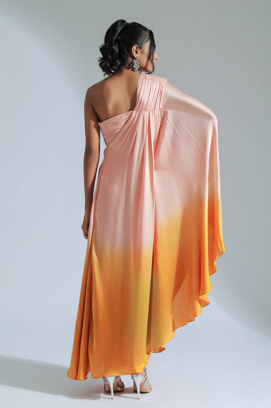 Peach & Orange Modal Satin One-Shoulder Maxi Dress