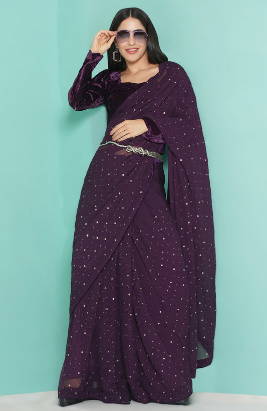 Shimmer georgette drape saree with a tulle blouse/organza ruffle