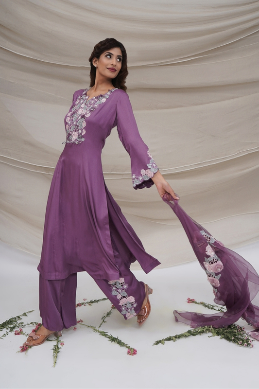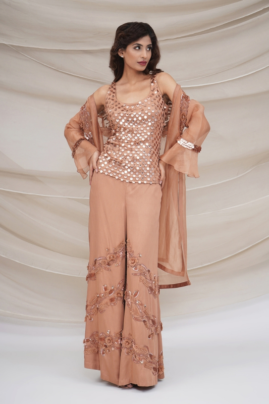 Mauve sequinned shimmer sharara set,embellished with embroidery