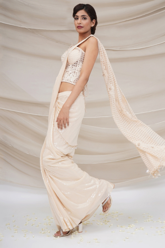Blending timeless romance with modern Indian occasionwear, the designs reflect quiet elegance, confident self-expression, and a poetic fusion of heritage and contemporary femininity — uniting Mani Kohli’s couture legacy with Geetanjali Singh’s modern vision.